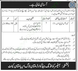 Address: Commandant Headquarters Multan Log Areal Multan Cantt.