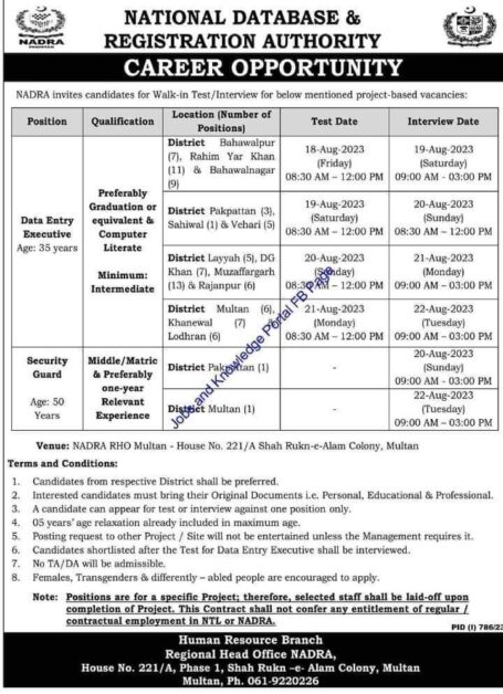 - Postal Address: Human Resource Section, NADRA Regional Head Office Karachi
